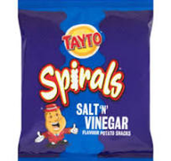 Potato Spirals (Potato Starch, Dried Potato, Salt, Sugar), Rapeseed Oil, Salt& Vinegar Flavour (Flavourings, Corn Flour,Flavour Enhancer; Monosodium Glutamate; Salt, Potassium Chloride Acid: Citric Acid).